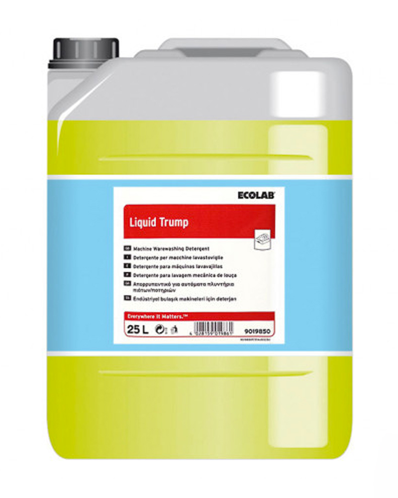 Detergente liquido per lavabar e lavastoviglie. Appositamente studiato per acque dure (si sconsiglia in presenza di acque dolci (0-5° F). Non contiene fosforo nè cloro. Previene la formazione di pellicole d’amido. Dosaggio attraverso apparecchiature Ecolab. PH in sol. 1%: 13-14.